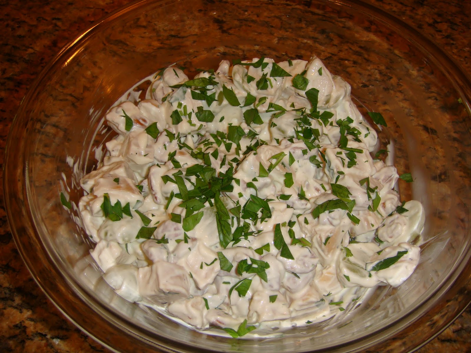 I love this chicken salad. It's my version of Ina Garten's (The Barefoot Contessa) Chicken Salad Contessa. It is great for sandwiches, wraps, on crackers or a sliced baguette. I wish it photographed better, because this picture really doesn't do it justice!