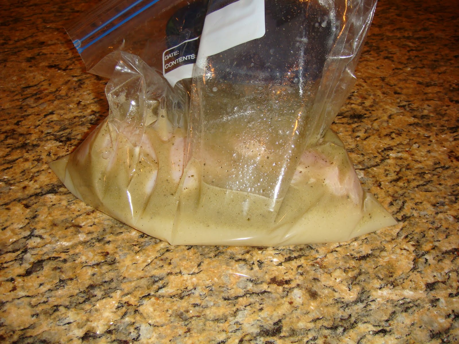 I marinaded our chicken breasts for about 7 hours, when I do bone in, skin on I will for 24 hours. If you are pressed for time, I would say do it for a minimum of 2. These birds are ready for the grill! Light you charcoal chimney or fire up that gas grill!