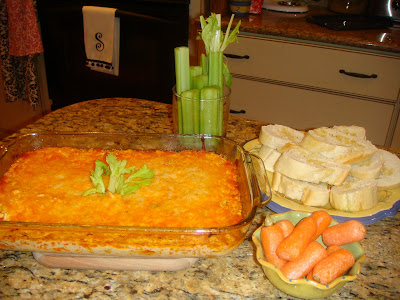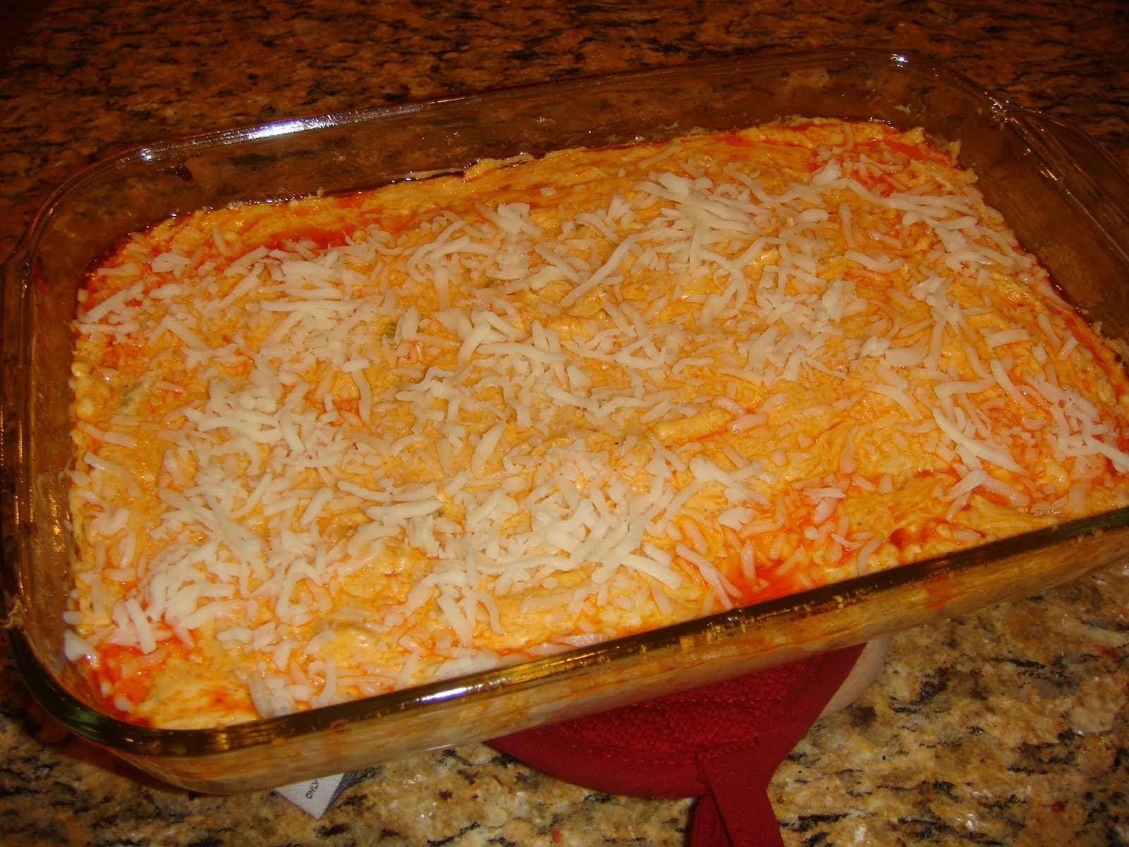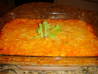 Spread the buffalo chicken dip to a greased casserole dish & bake at 350 degrees 15-20 minutes.