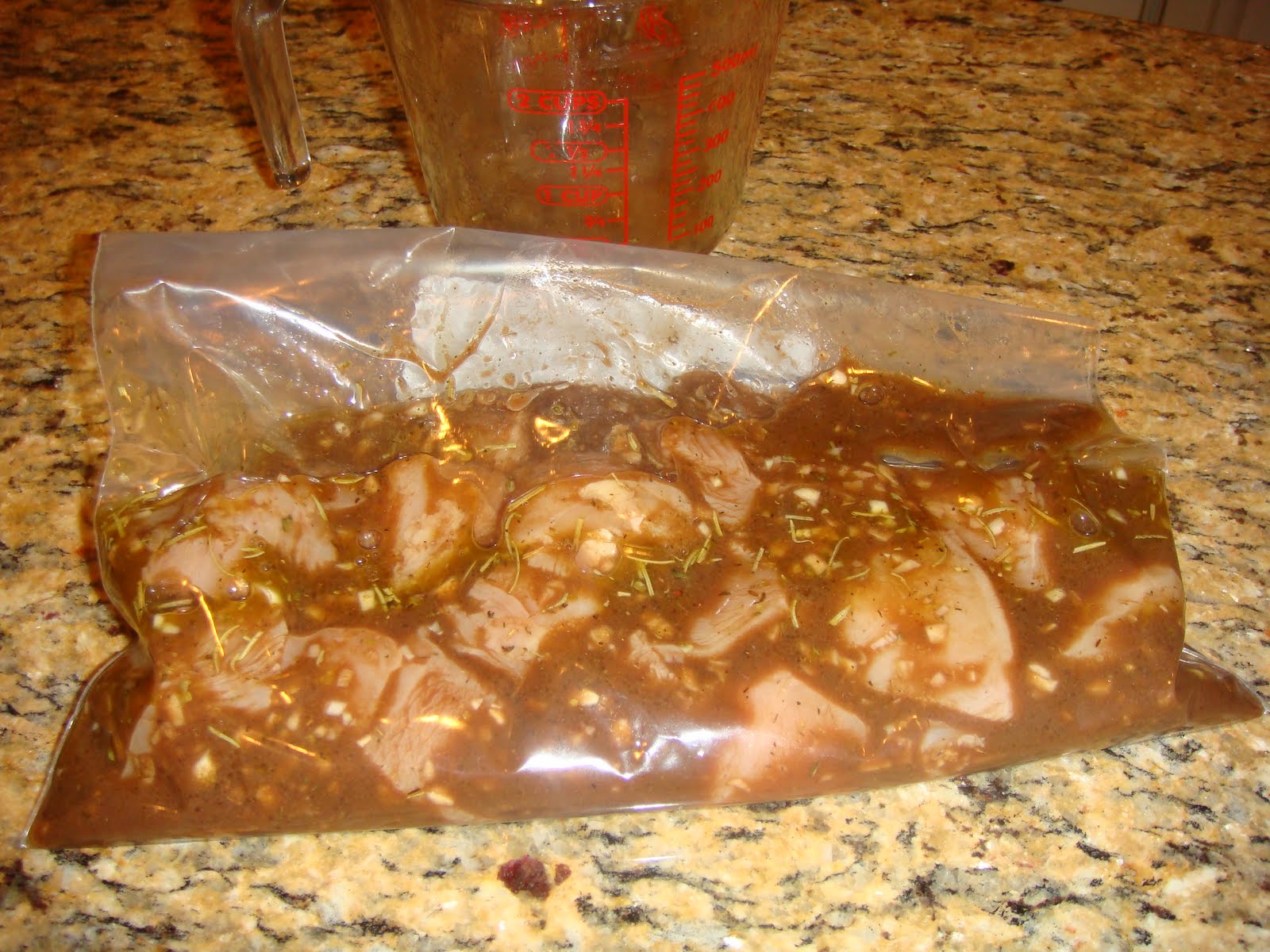 Place the cut up chicken pieces into a large, resealable, plastic bag or casserole dish. Then pour the marinade all over it, make sure that all the pieces are evenly coated.