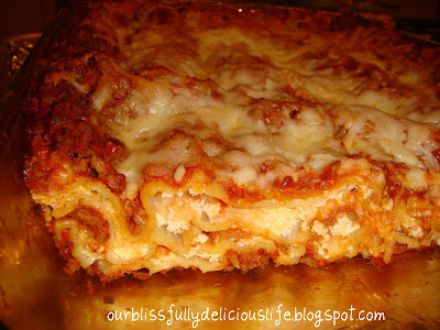 This is my favorite lasagna. Classic meat & tomato sauce, creamy ricotta cheese, layered with noodles & more cheese. YUM! It's such a crowd pleaser; everyone loves it & it can feed a lot at once. And really, it is quite simple to make.