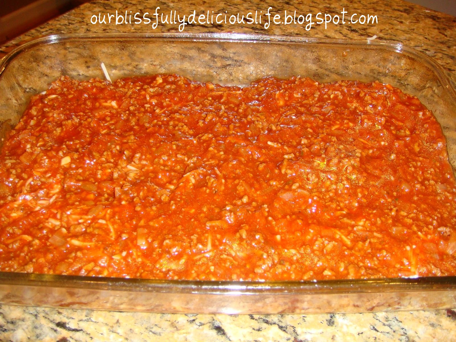 Spray a 9 X 13 lasagna or casserole dish with non stick spray. Ladle in about 1/3 of the sauce or enough to cover the bottom of the pan.