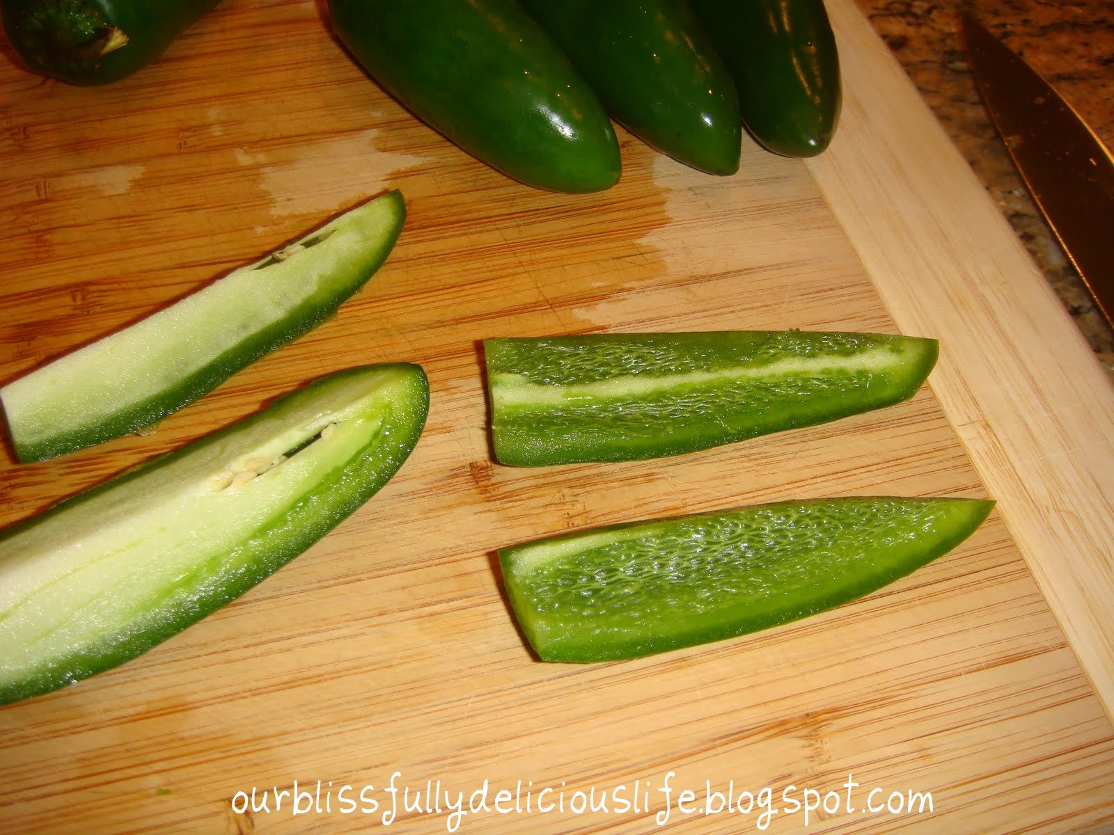 Take care not to touch your eyes, mouth, etc while cutting the Jalapenos. And make sure you wash your hands well after you are finished!