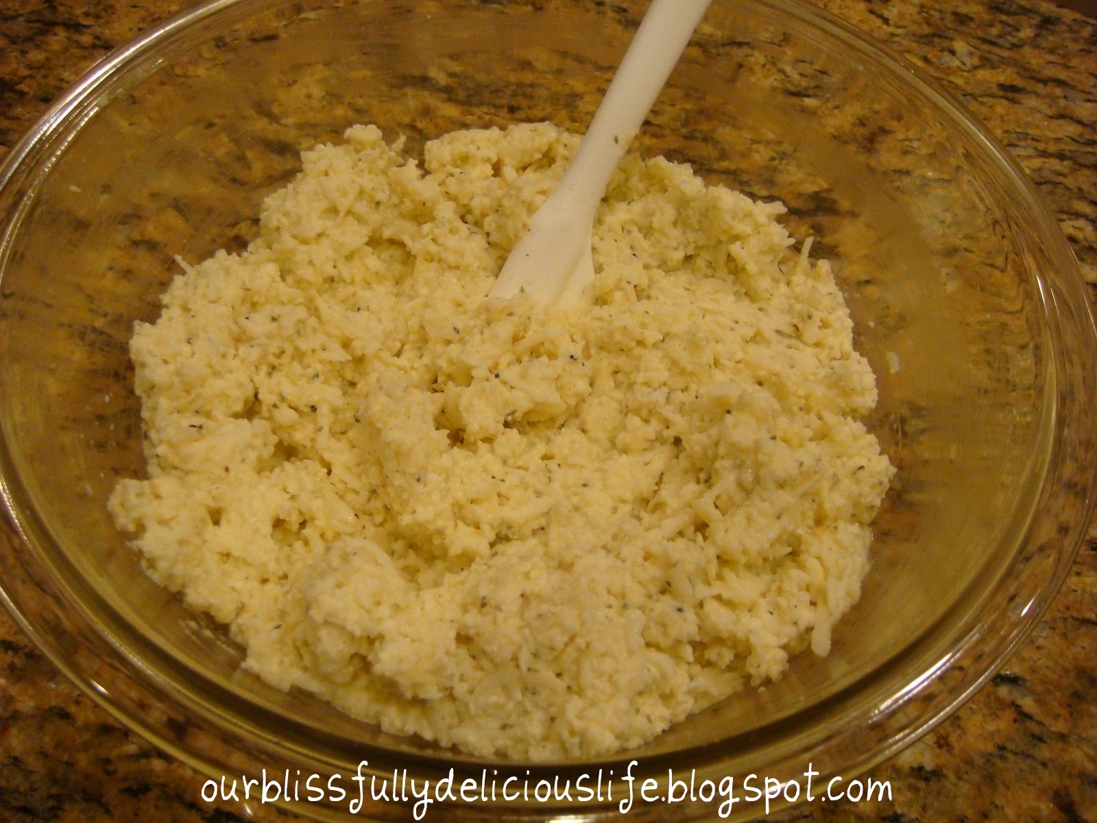 While the shells are cooking, combine the ricotta, mozzarella, & parmesan cheeses with the eggs & herbs.