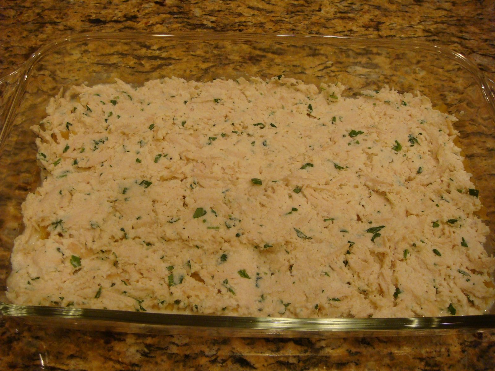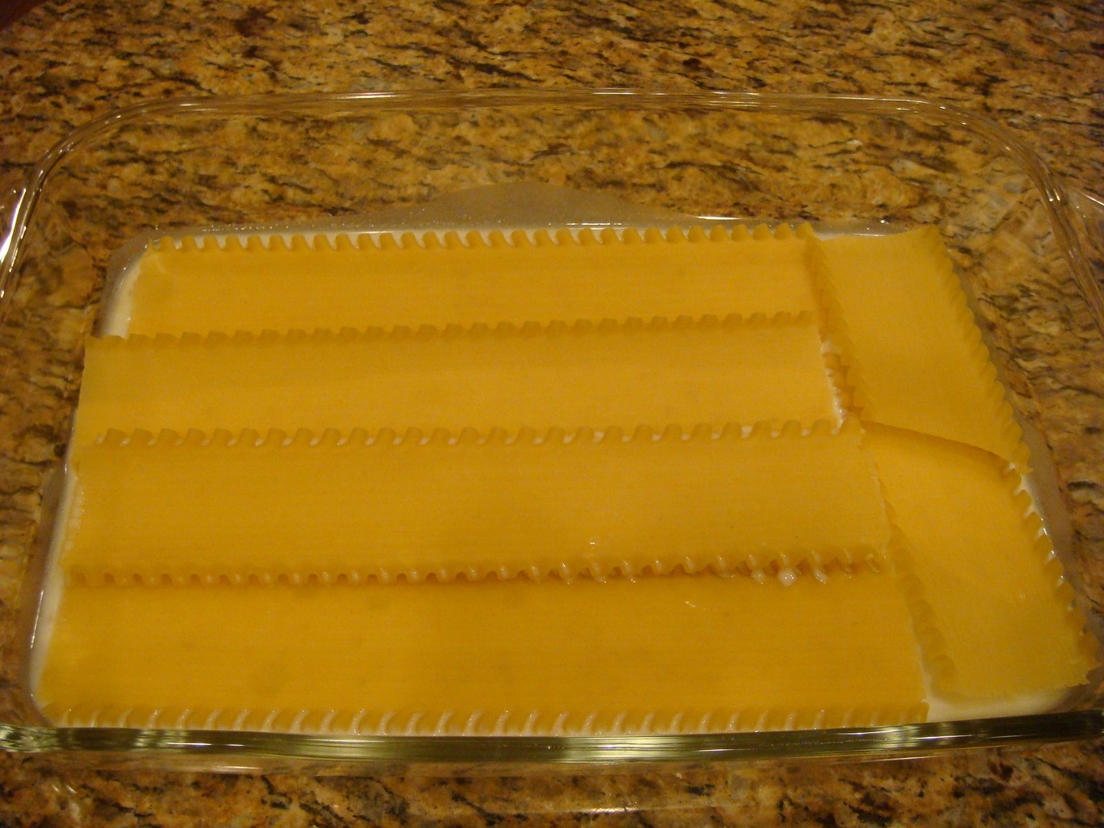 In a 9 X13" casserole or lasagna pan, add 1 1/2 cups (or so) of the Garlic & Parmesan cream sauce.