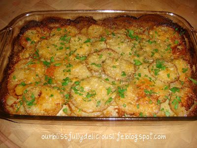Oh my! I know exactly why these lovely potatoes were apart of my husband's week of favorites this year! They are so darn good! Thinly sliced potatoes cooked in a rich & creamy sauce with a crispy Parmesan top- what's not to love about that?!? Other than their caloric content of course. But we won't talk about that!!