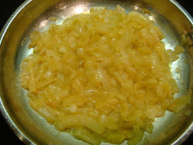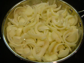 Directions:Cut the onions in half, then slice. Heat 1 tablespoon of olive oil in a 10" skillet over medium/ high heat. It looks like a lot of onions, but don't skimp! You're topping a whole pizza & they cook down to practically nothing. Add the additional tablespoon of oil if you need it. Season with salt & pepper.