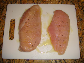 I grilled boneless, skinless chicken breasts, but you could use bone in chicken too, what ever you prefer. This makes enough sauce for about 4 pieces of chicken. I seasoned the chicken breasts with salt & pepper then drizzled it lightly with olive oil.