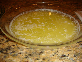 Preheat your oven to 400 degrees. Cut your chicken into 1/2" cubes. Melt your butter. I just put the butter in a glass pie plate & microwave it at 30 second intervals until it is melted. Make sure to take it out & swirl the plate around to mix it together.