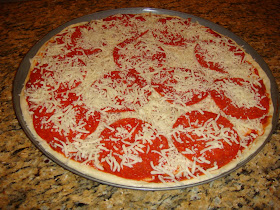 Then start your toppings. I usually do a light 'dusting' of cheese then the other toppings, finishing with a little more cheese on top.