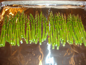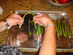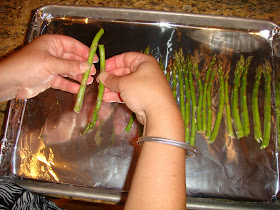 Preheat the over to 350 degrees. Wash your asparagus. Then 'snap' off the bottoms. I always bend my aparagus like this: