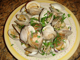 Heat the grill to medium heat. Clean all of the closed clams by scrubbing them under running cool water. You want to make sure you get all the sand & grit out of them. If any of your clams have opened up, make sure that they are still alive by tapping them on the counter. If the clam doesn't close back, discard it. Place the cleaned clams on the grill & cook until they start to open, 17-22 minutes. If a clam doesn't open after 22 minutes or so, discard. While the clams are cooking, melt the butter on medium/ high heat in a small skillet or sauce pan. Add the minced garlic & cook until golden. Using a small spoon, scoop out the milk solids that accumulate at the top & discard. Keep the garlic butter warm on low heat until the clams are ready. When the clams are finished cooking, plate them in a shallow bowl (I used a pasta bowl). Pour a little of the garlic butter directly over the clams then pour the rest into dipping bowls. Sprinkle the parsley over the clams. Serve immediately with the garlic butter to dip.