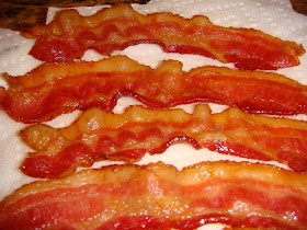 Remove from the oven & drain the bacon strips on a plate lines with paper towels. I like to blot the excess grease of the tops with another paper towel.