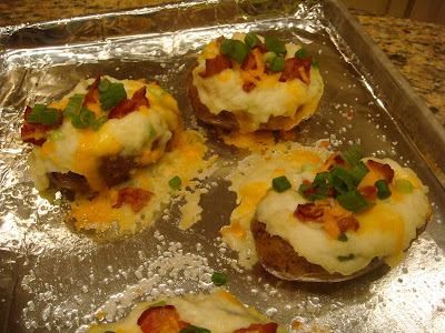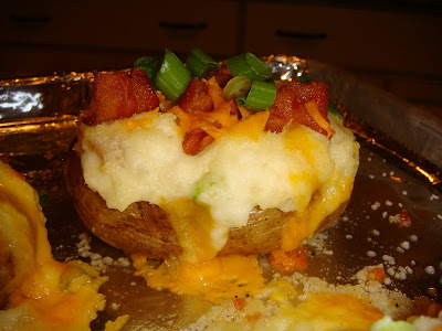 A classic favorite, what's not to like about this bacon, cheddar & spring onion stuffed spud?!? They are the perfect companion for a nicely grilled steak dinner or simply served with a green salad for lunch. They are great for dinner parties too, you can assemble them in advance & finish baking them while you mingle with your guests.