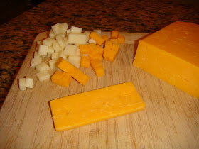 1/2 cup Sharp Yellow Cheddar Cheese, cut into cubes, plus some shredded for topping
