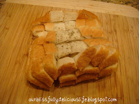 Place the cubed bread in a buttered 9 X 12 casserole dish. Then add the sauteed onion & garlic with all the melted butter and the chopped spring onion & parsley.