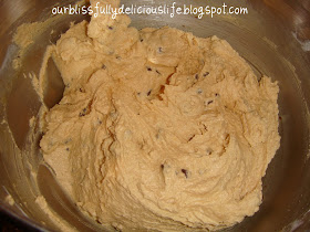 Stir in the chocolate chips. I used a little over 1/2 cup of the mini's. The original recipe calls for 1 cup of peanut butter chips so use what ever you'd prefer!
