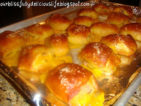 OH MY, the are good. Seriously, the homemade, soft pretzel alone is to die for. But add some ham & cheddar- it is are out of this world!! You've got to try them. They are perfect for a cocktail party, tailgating, or just for a fun snack! Making this dough is easy & very similar to making pizza dough. They take a little bit of time, but it's not difficult. Definitely something I will make over & over again.