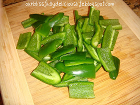 In a small skillet, saute the peppers in a little olive oil over medium/ low heat. Just for a few minutes, until they are soft.