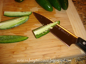 Take care not to touch your eyes, mouth, etc while cutting the Jalapenos. And make sure you wash your hands well after you are finished!