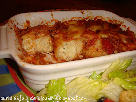 Spoon more sauce over the top of the shells. Then top with some additional cheese (optional).