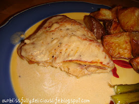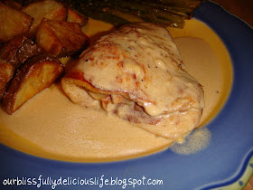 This is Chicken Cordon Bleu my way.  It's not battered or breaded & it's way easier than the classic french version.  I make mine with Prosciutto & Havarti Cheese but you can make it with any ham or cheese you'd like.  The creamy Dijon pan sauce gives it the perfect finishing touch.  You've got to try this recipe- my family loves it!