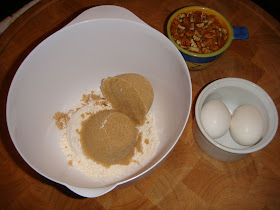 In a medium sized bowl, combine the flour, brown sugar, nuts & melted butter.