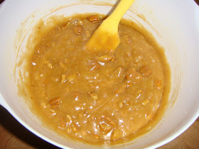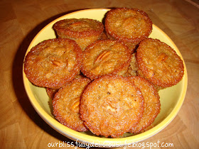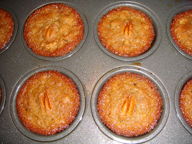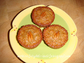 Spray a mini muffin tin with non- stick cooking spray then spoon the batter evenly into the cups.  I topped mine with an extra pecan half.