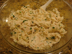 Add the ricotta, shredded chicken, garlic & herb seasoning, & fresh, chopped parsley to the beaten egg. Fold to combine.