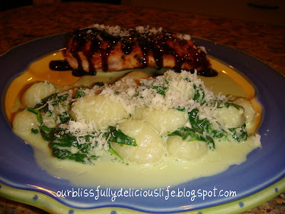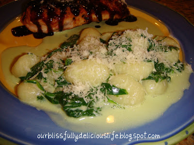 This is like combining gnocchi with creamed spinach & then adding extra Parmesan! It is so good, I ate it left over for 2 straight days- and I don't usually like left overs!