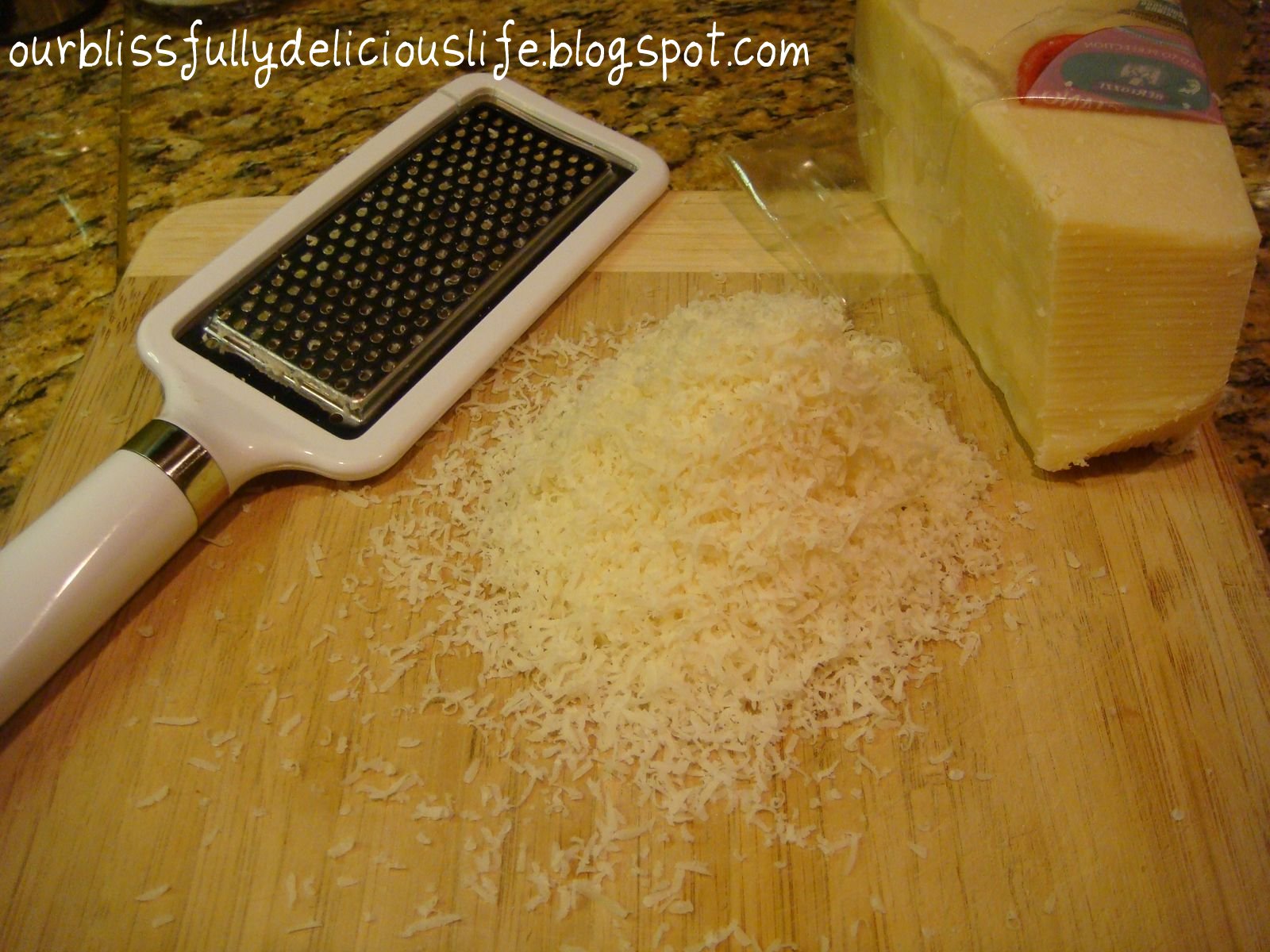 Grate the Parmesan Cheese. I put about 3/4 cup in the sauce & then used more for topping.