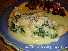 This is like combining gnocchi with creamed spinach & then adding extra Parmesan! It is so good, I ate it left over for 2 straight days- and I don't usually like left overs!