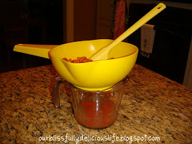 Drain the cans over a bowl, reserving the liquid from the can.  I drained it into a measuring cup with a pouring spout.