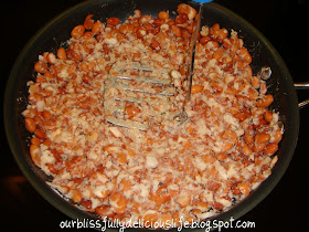 Top the warm beans with the shredded cheese.  I loved the Colby-Monetary blend in this!  Cheddar would be good too, but use what ever you like!
