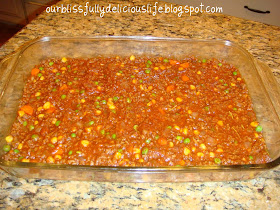 Preheat your oven to 350 degrees. Add the meat & vegetable mixture to the bottom of a 9X13 casserole dish.