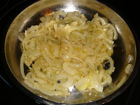 While the onion is cooking, pour the heavy cream into a small sauce pan.  Add the butter & cook over low heat until the butter is melted.