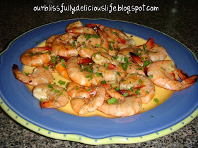 My husband loves this simple shrimp recipe.  I marinate shrimp with lots of garlic, olive oil & Old Bay then grill them.  They are so tasty, no cocktail sauce is needed!  I made this for part of John's birthday dinner this week.  Along with a big Porterhouse Steak, my Twice Baked & Over Stuffed Potatoes & a green salad with Homemade Ranch Dressing.  He was a happy (and very full) birthday boy!