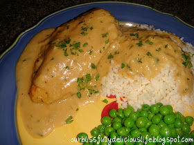 This is a delightful dish.  It's comfort food that sounds fancy & it's also incredibly easy to make.  Especially if you buy the garlic cloves already peeled.  (And no, that's not cheating.)  Don't be alarmed by the amount of garlic either.  It cooks into soft buttery deliciousness & for the most part, the cloves melt into the sauce.  In fact, if it wasn't called Chicken with Forty Cloves of Garlic you would guess it had that much in it.  I make it with boneless skinless chicken breasts because that's what we like to eat.  But Ina Garten's recipe (which I adapted mine from) uses whole chicken pieces.  So use what ever you'd like- white or dark meat, bone & skin on or not.  It will all be delicious coated with this dreamy sauce!