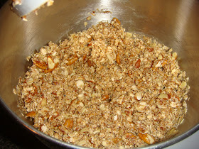 When the oats & nuts have cooled, place them in a mixing bowl & add the dried fruit.