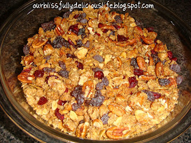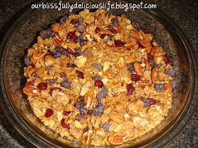 This stuff is so darn good!  I'm kicking myself for not making it sooner.  I love that you can can do so much with it.  And well, let's be honest.  I like that I can make it with all my favorite ingredients.  I'll never buy it again, it is so easy to make & keep on hand.  Add it to some yogurt or ice cream.  Or, if you're like my family, just eat it with some milk like cereal. It's quick, easy, & good for you!!  It makes for a great present too.  Make it for holidays, bake sales, or any occasion!