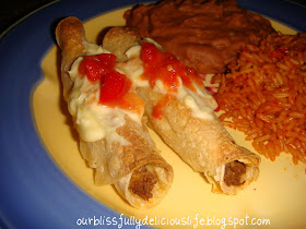 I like to top my taquitos with some of the Queso Dip & some salsa.