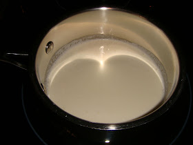 In a small sauce pan, add the half & half.  Heat over medium heat.  (I usually do this first, so we can snack on the dip while the taquitos are cooking.)
