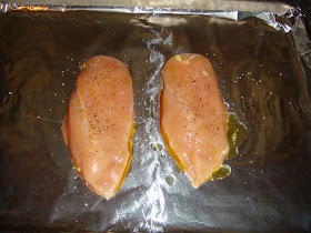 Season the chicken breasts with a little salt & pepper.