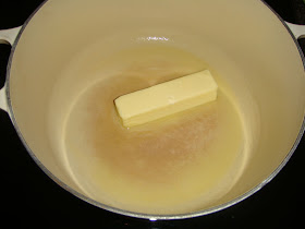 While the chicken is roasting, start the soup.  Melt the butter in a large pot over low- medium heat.  I used a 5.5 quart dutch oven.