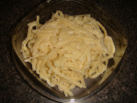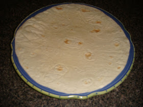 When the chicken, rice & beans are cooked, it's time to make the burritos! Start with a tortilla. Microwave 1-2 tortillas for 15 seconds or so, just to soften them up.