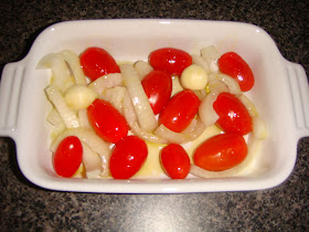 Then assemble each burrito. On the bottom half of the tortilla, I spread some refried beans then add rice & chicken. Next, I spoon some of the tomato sauce evenly over & top with some cheese.