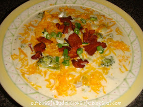 I am excited to share this soup recipe!  It is a culinary smash up; two classics combined to make one delicious soup!  It's Broccoli & Cheddar with Potatoes & Bacon.  Need I say more??