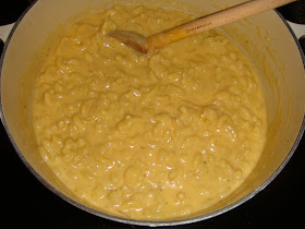 Then add the cooked pasta to the cheese sauce & stir to incorporate.