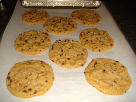 This makes about 16, good sized cookies.  I found this wonderful cookie recipe on the Brown Eyed Baker's site.  Check her out, she has lots of other goodies too!!