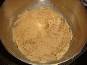 With a mixer on medium speed, cream together the butter, peanut butter, both sugars, & vanilla extract, about 3 minutes.